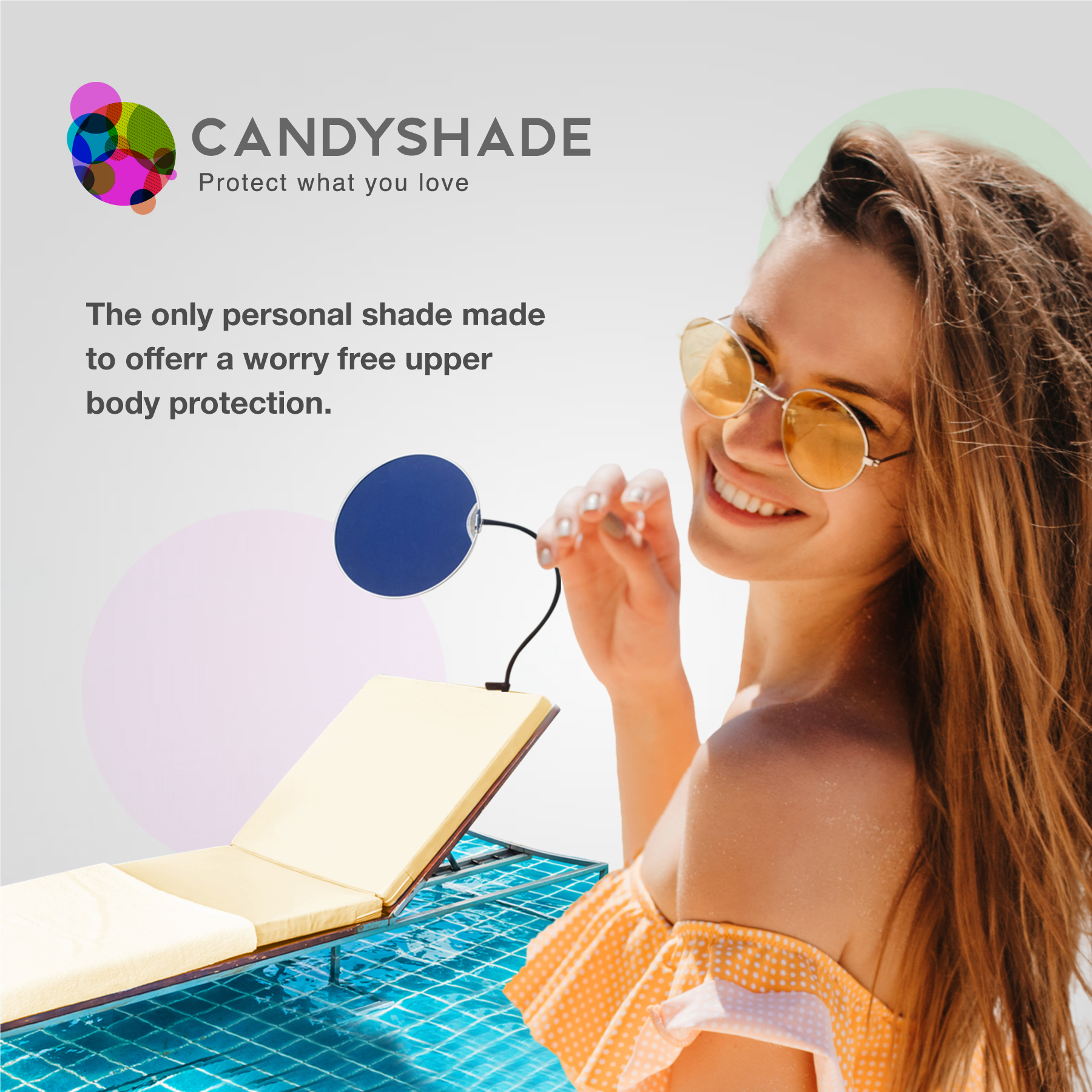 CandyShade is a portable, lightweight sun shield that provides ultimate UVA & UVB protection for your upper body skin.